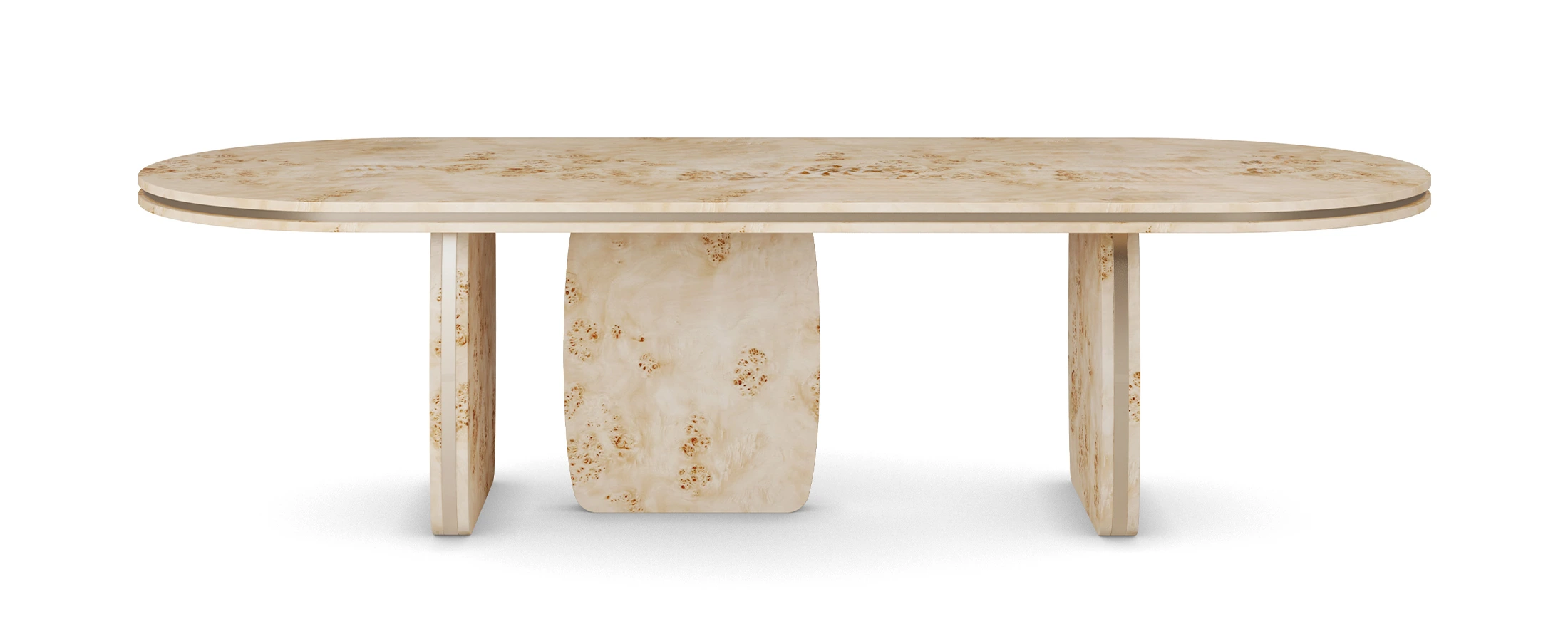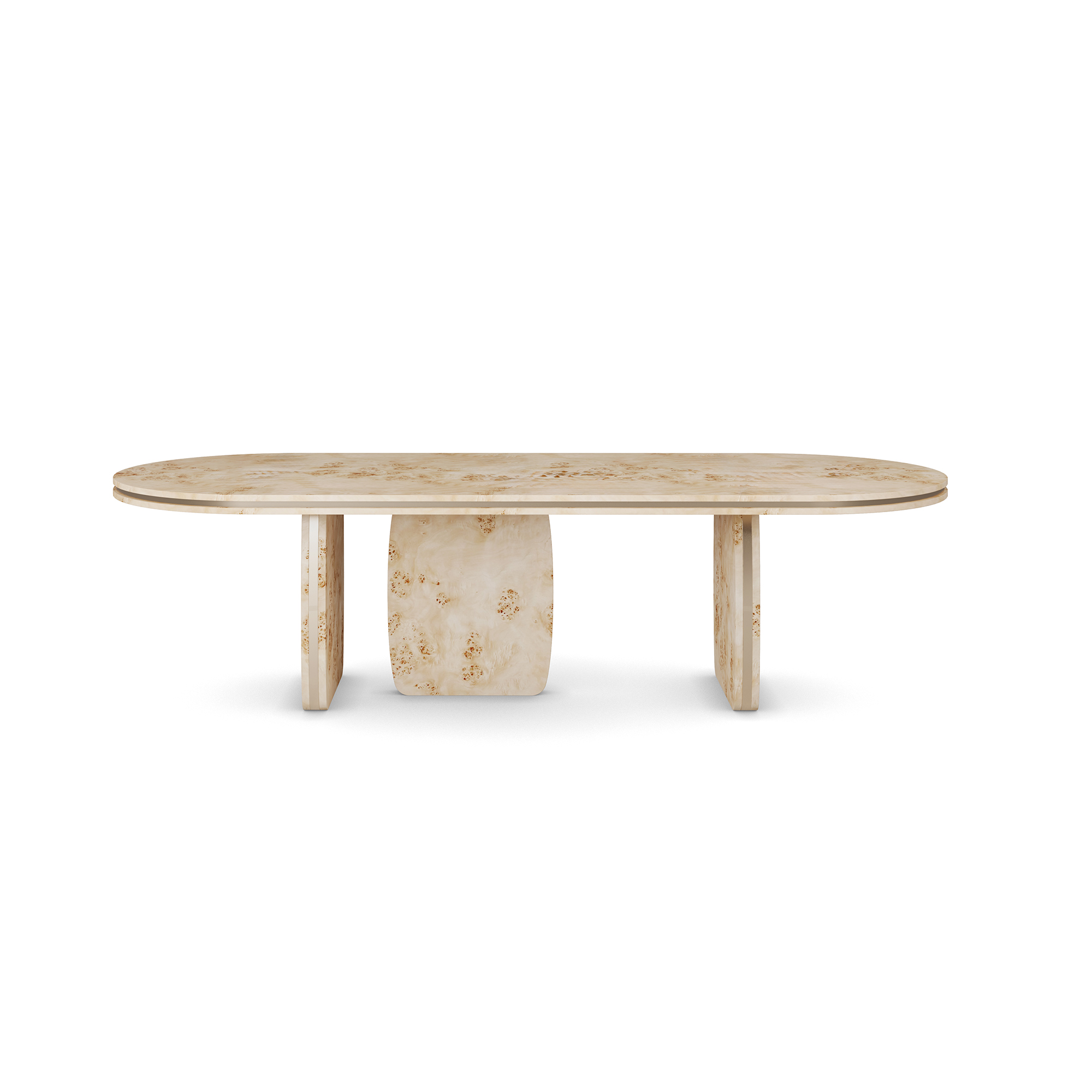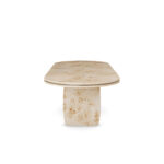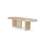 The Assia Dining Table embodies a refined interplay between organic texture and modern design. This poplar root dining table showcases the natural beauty of richly figured wood, brought to life through masterful craftsmanship. Its softly rounded form rests on sculptural legs that balance solidity and grace, framed by subtle brass accents that lend a quiet luminosity. Hand-polished to reveal the intricate grain, each surface tells its own story of nature’s artistry. As a handcrafted dining table in natural poplar wood and polished brass, Assia is both tactile and architectural, a contemporary sculptural dining table that serves as an elegant statement for the most sophisticated interiors.