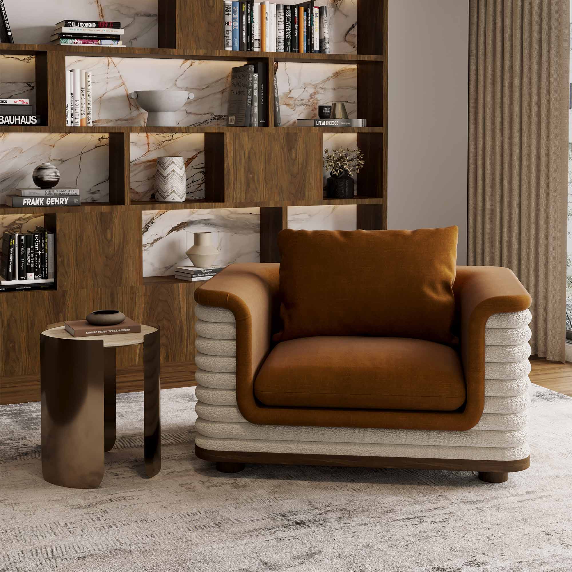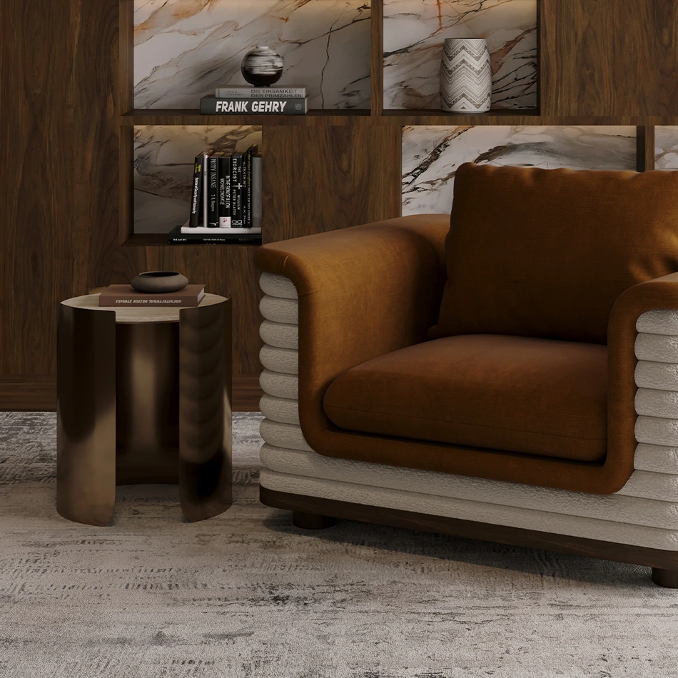The Bria Side Table embodies refined simplicity and sculptural balance. Crafted from natural travertine and polished brass, this luxury side table with a sculptural base showcases the harmony between organic texture and sleek modern form. The softly rounded base supports a smooth stone top, creating a piece that feels both grounded and elevated. Thoughtfully handcrafted in travertine and polished brass, Bria reflects meticulous craftsmanship and timeless design. Sophisticated yet versatile, it serves as an elegant living room table and a contemporary side table that brings quiet sophistication to any refined interior.