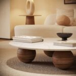 Unique wooden spherical legs, providing both stability and a distinctive design element.