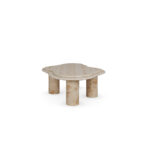 Its organic silhouette is brought to life through two layered travertine tops, gently curved to mirror natural movement and subtle asymmetry.