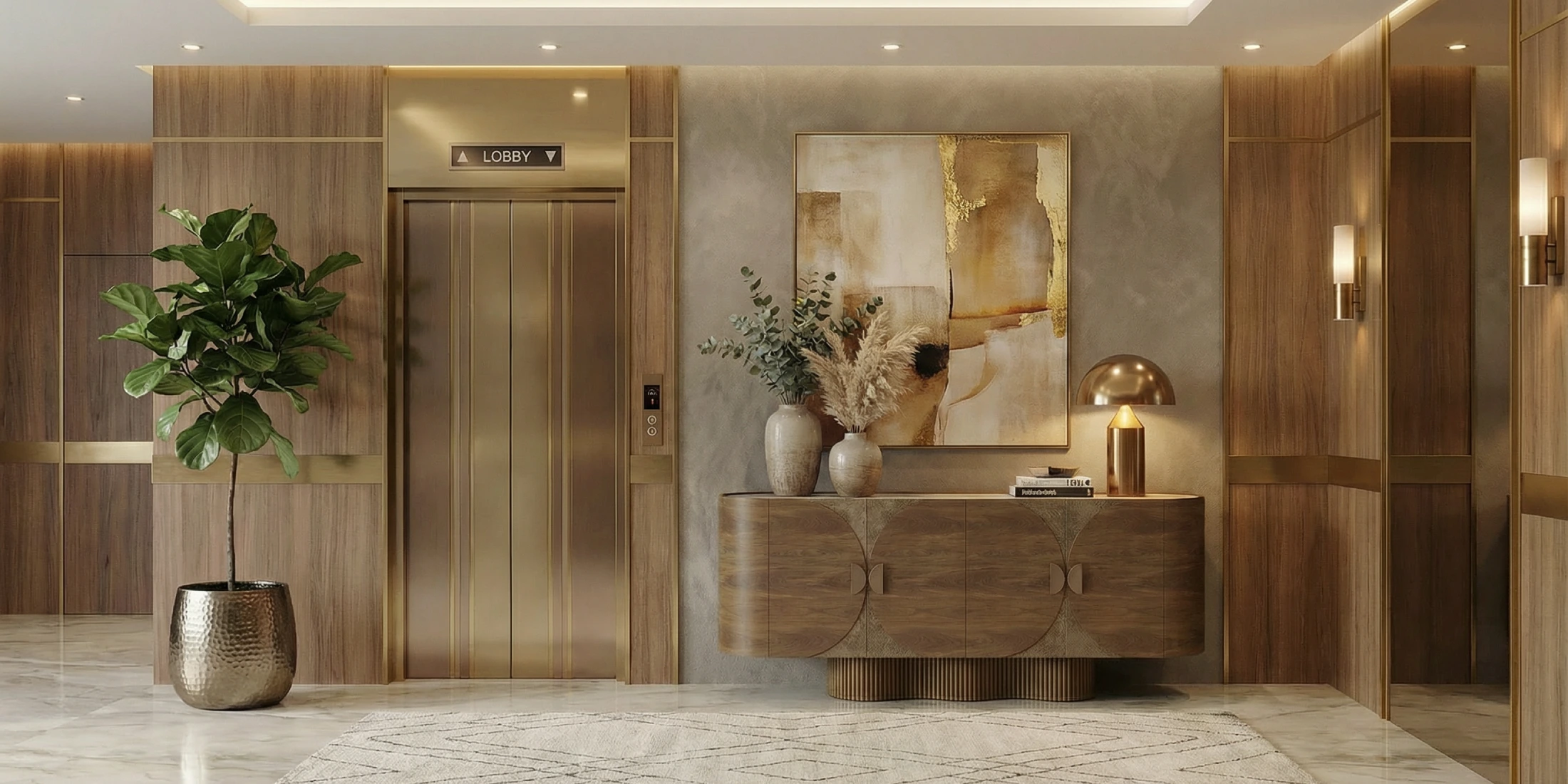 | Materials | Finishes | Travertine, Walnut Matte, Textured Aged Brass |
