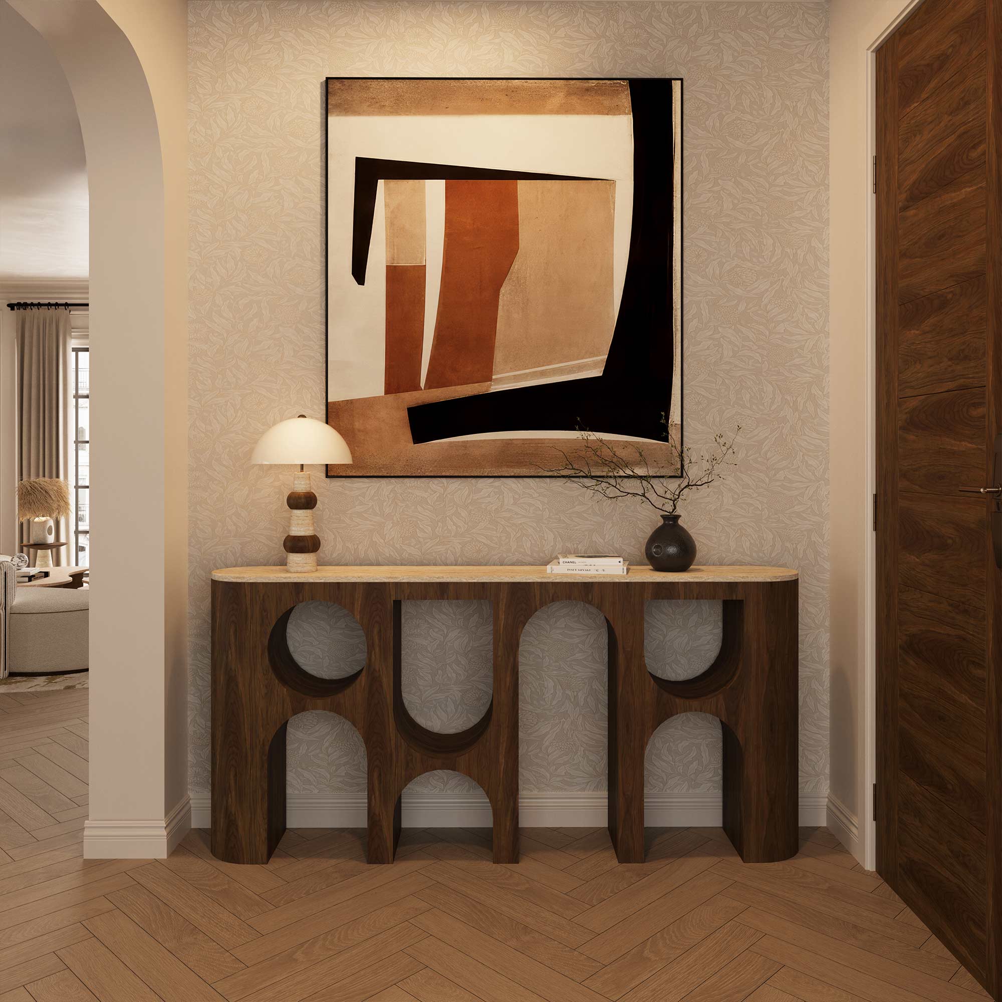 A striking piece of luxury furniture that combines architectural elegance with modern design.