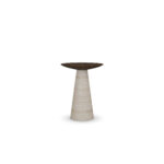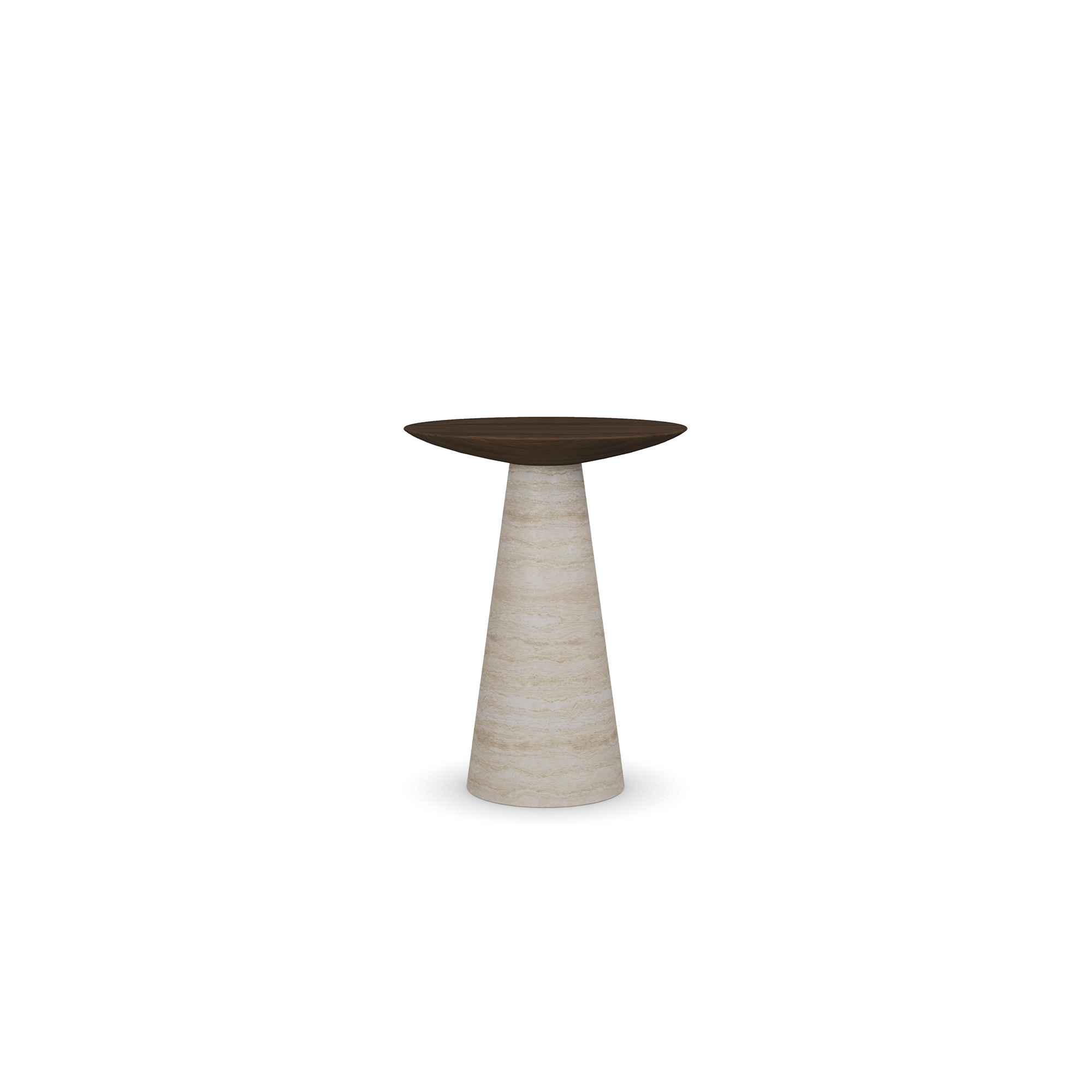 The Lotte Side Table is a high end walnut and travertine side table, conceived for balance and quiet longevity. A figured walnut top with a softened edge settles over a conical base in honed travertine, its natural veining reading as restrained movement. Joinery remains discreet; a slim reveal where timber meets stone lightens the mass and clarifies proportion. As a handcrafted side table in warm wood with a stone base, it offers a grounded, architectural presence without visual weight. Set beside a lounge chair or at the end of a sofa, this minimalist accent suits refined interiors while expressing Nolita Harbour’s material-first approach to contemporary craft.