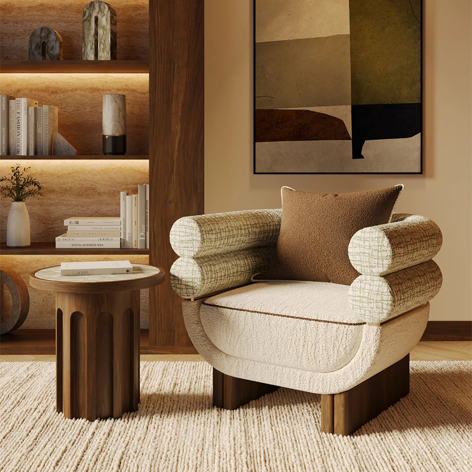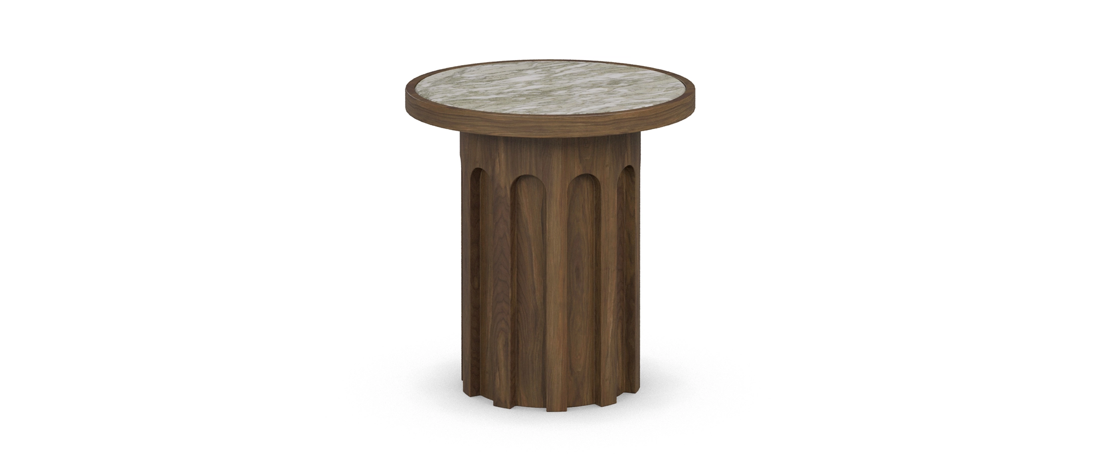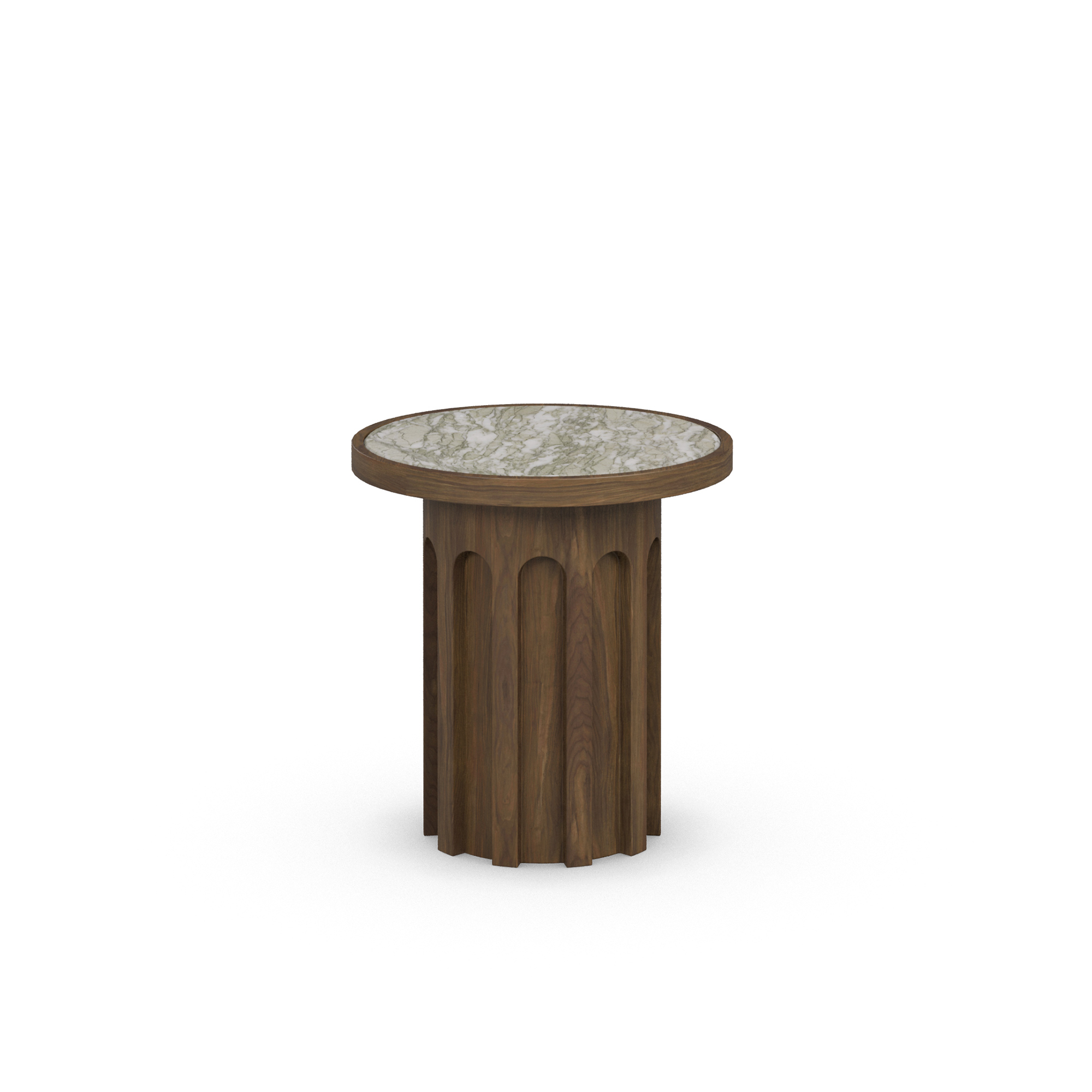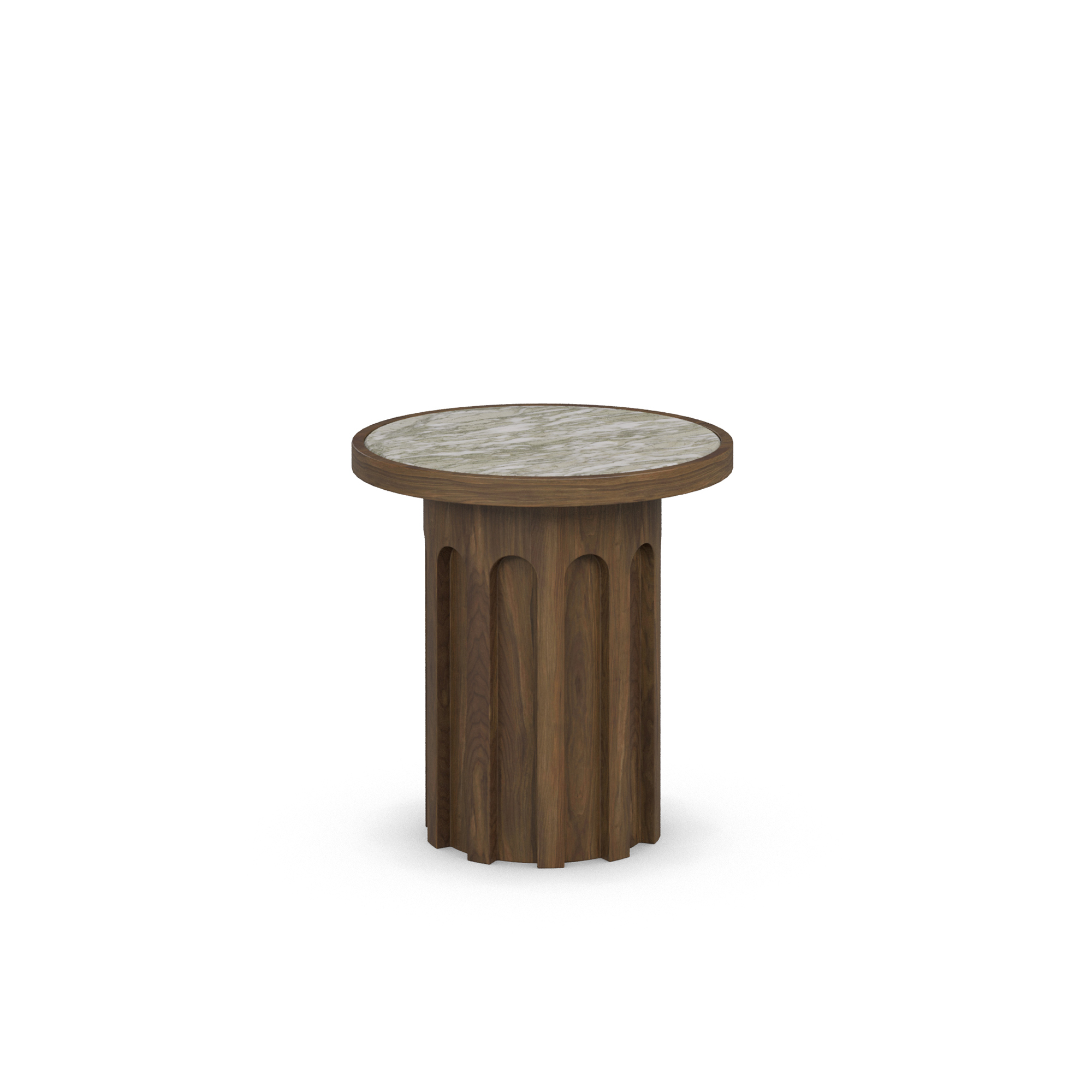 A sculptural blend of form and material, the Selene Side Table pairs a fluted walnut wood base with a striking Persian green marble top. Elegant and timeless, it adds depth and character to any modern interior.