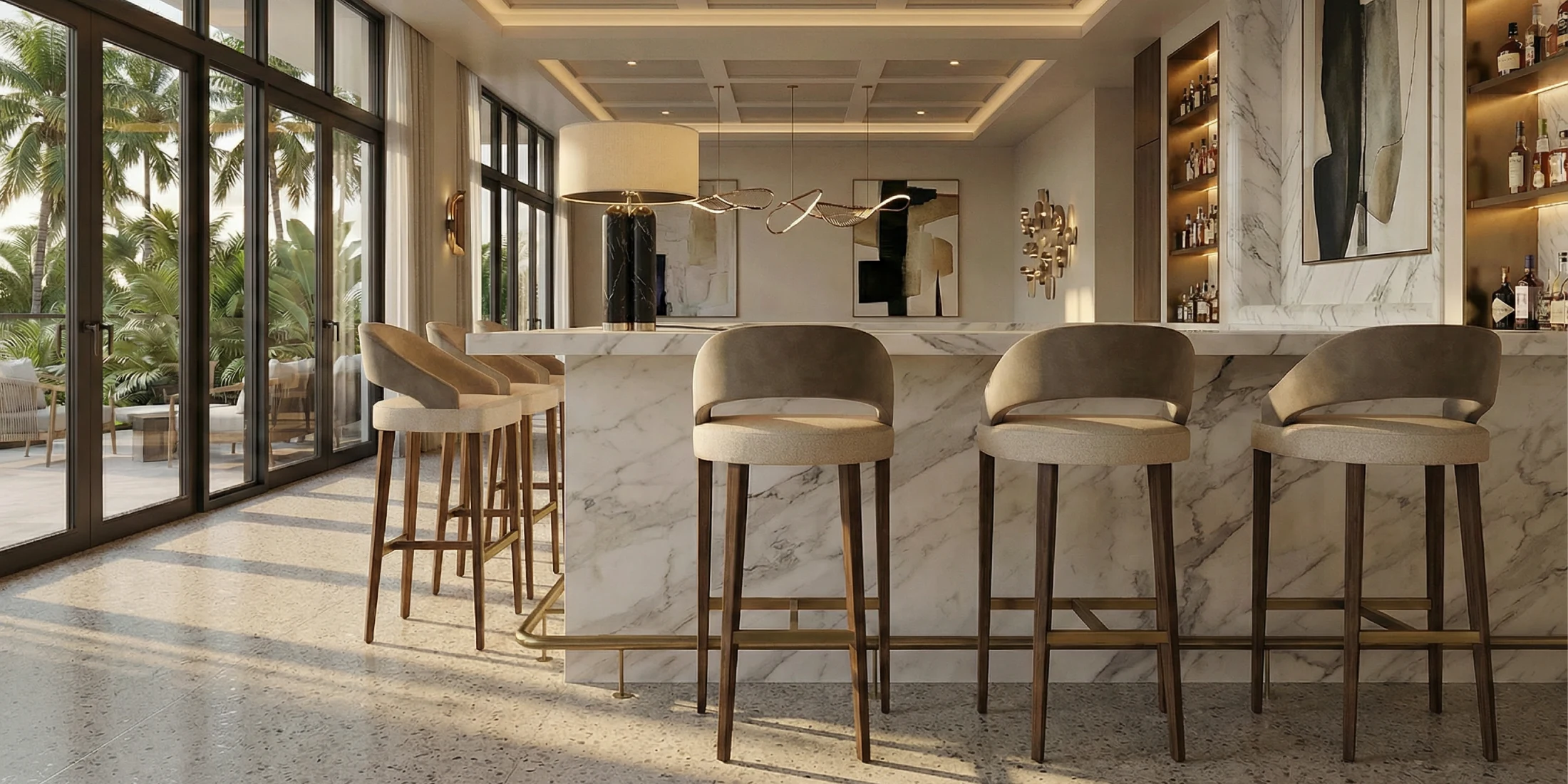 Custom stone selections, metal finishes, and shade textiles can be specified through Samples, enabling the Arnaud silhouette to align seamlessly with wider project palettes.”