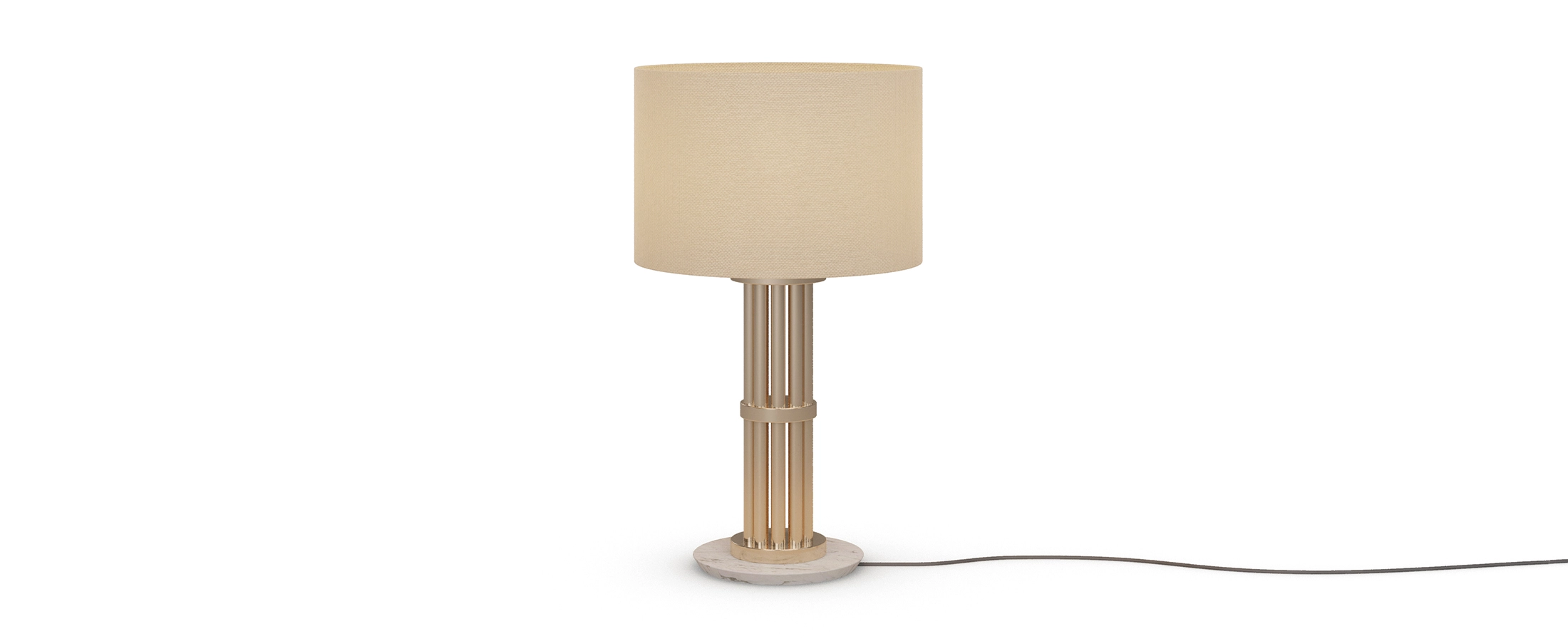 a series of gold-plated metal rods form a structured column, creating a captivating balance of strength and sophistication