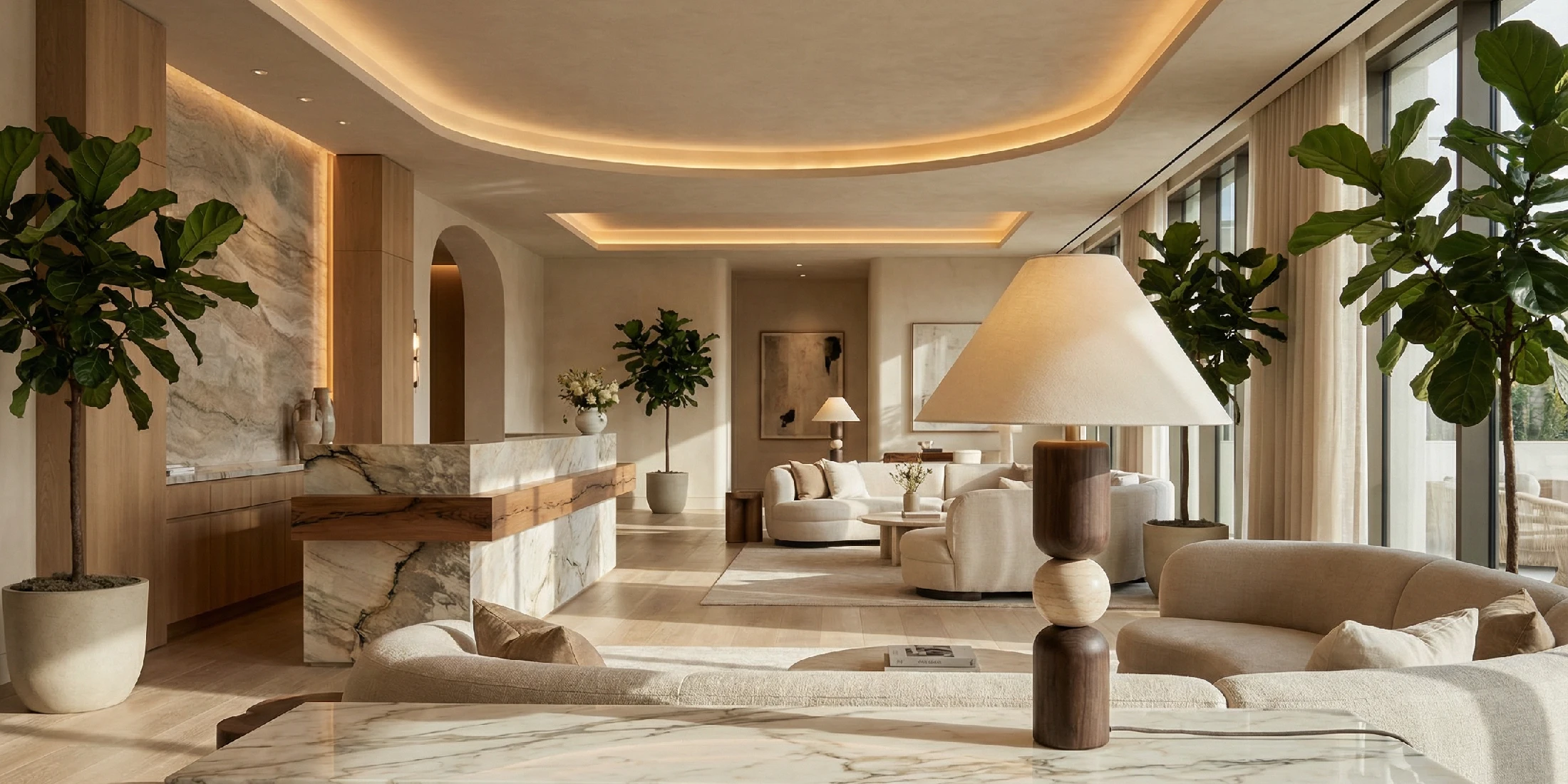Finishes and textiles can be adjusted to your project through Samples, with curated stone, wood tones, and shade fabrics available to align with a wider material palette.”