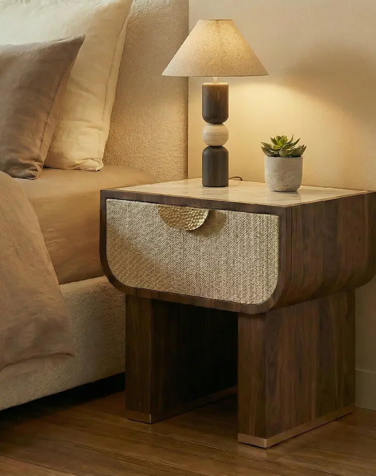| Materials | Finishes | Black Timber, Travertine, Textile |
