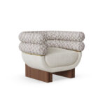 For a refined pairing, anchor a reading corner with Isa Side Table, whose travertine and walnut composition echoes Amélie’s material language and curvature for a cohesive vignette.