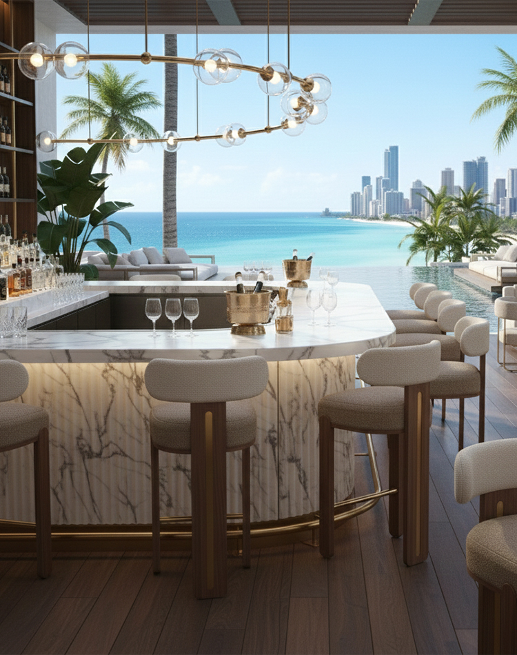 Elevate your kitchen island or home bar with the Diane Bar Chair — a refined fusion of comfort, texture and timeless elegance. Upholstered in sumptuous bouclé, the seat invites you to linger over drinks or conversations, while the curved backrest provides subtle support without disrupting the sleek profile. The warm walnut wood base grounds the design in natural sophistication, and polished brass details add a whisper of luxury — perfect for a Mediterranean-inspired interior where craftsmanship and understated glamour meet. Designed to complement contemporary counters or oversized bar tables, the Diane Bar Chair brings a graceful, sculptural presence that makes everyday moments feel elevated.