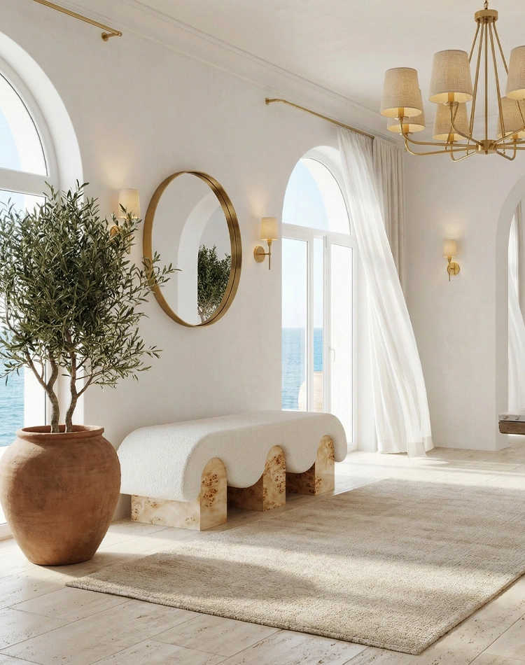 Versatile and serene, the Corinne Bench transitions seamlessly between spaces: placed at the foot of the bed, styled in a foyer, or used as additional seating in a living room.