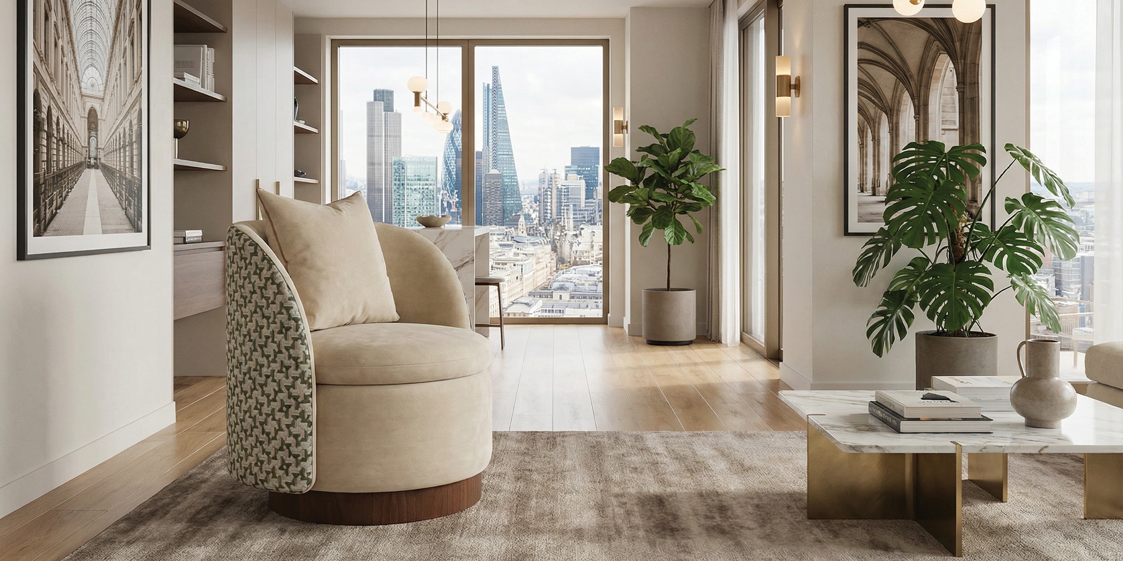 Comfort remains disciplined. The supportive wrap holds posture for conversation, and the compact footprint keeps arrangements balanced, a truly organic modern accent chair that stays visually serene in plan.
