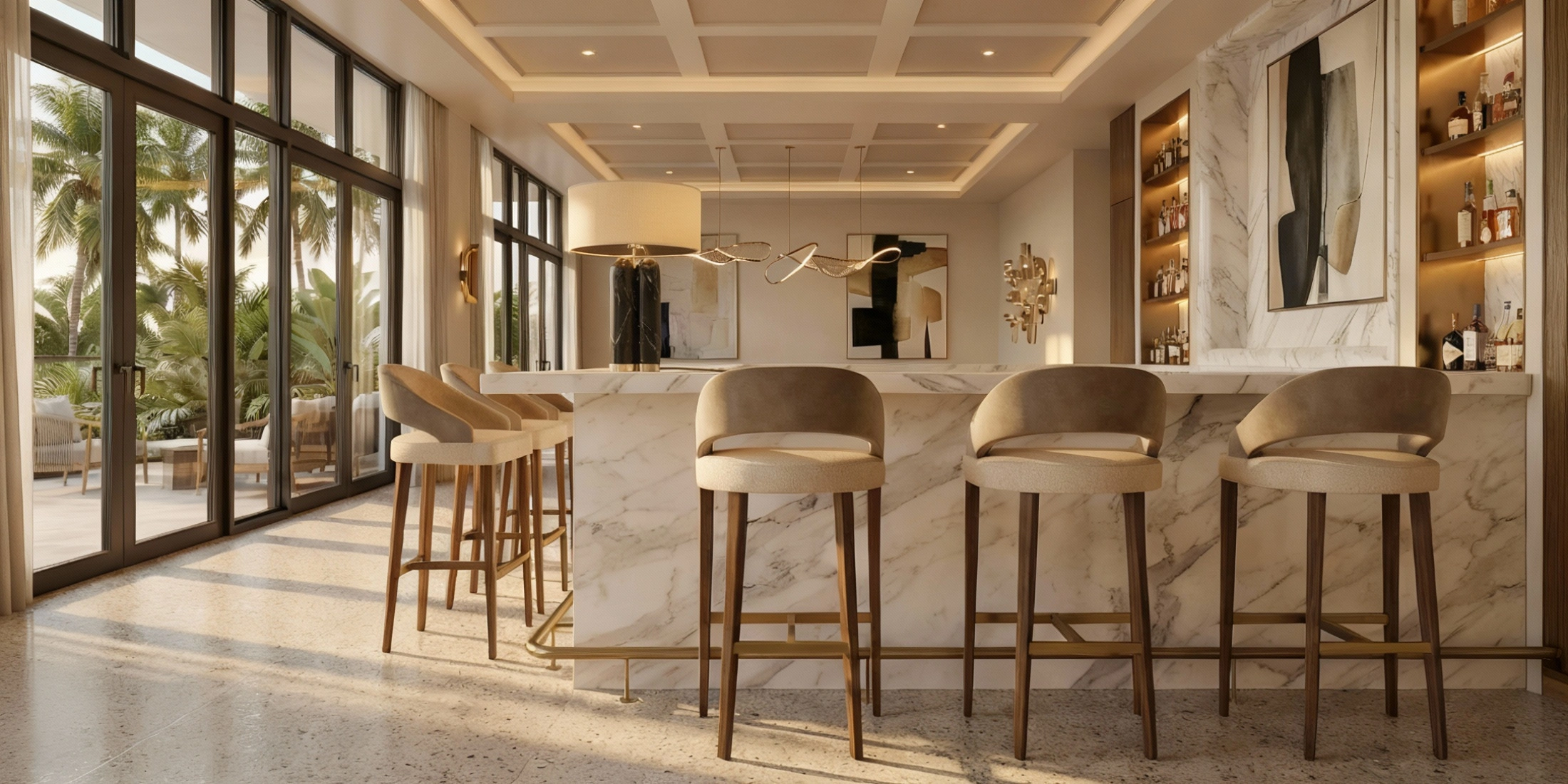 Dini Bar Chair brings a blend of modern elegance and practical comfort to any setting.