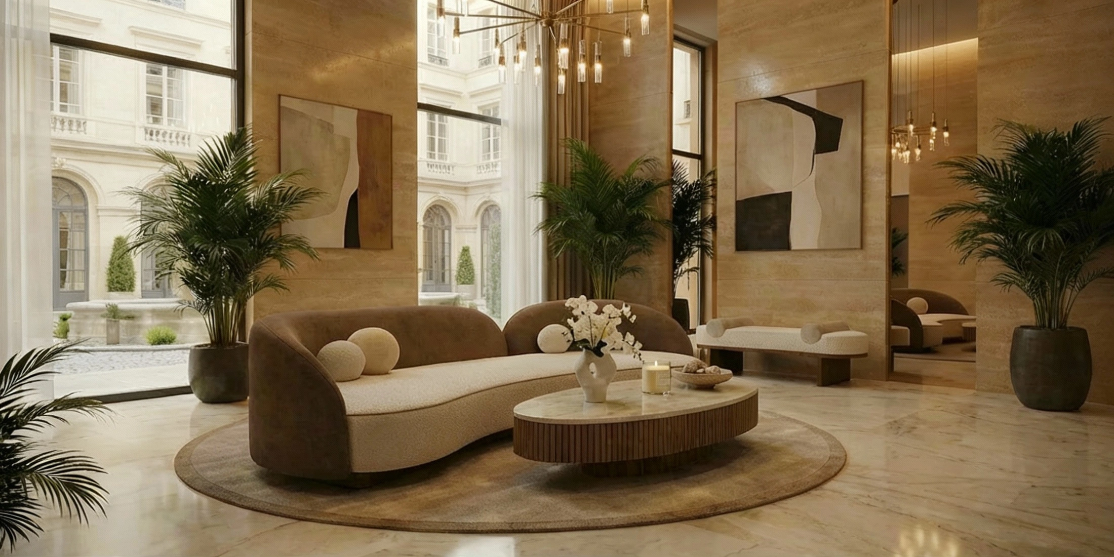 Ellora is a luxury sculptural sofa composed with elegant asymmetry and a calm, flowing line. Offset backrests gather into a soft radius that cradles the body while the outline stays crisp and composed in plan. The profile reads organic from every angle.