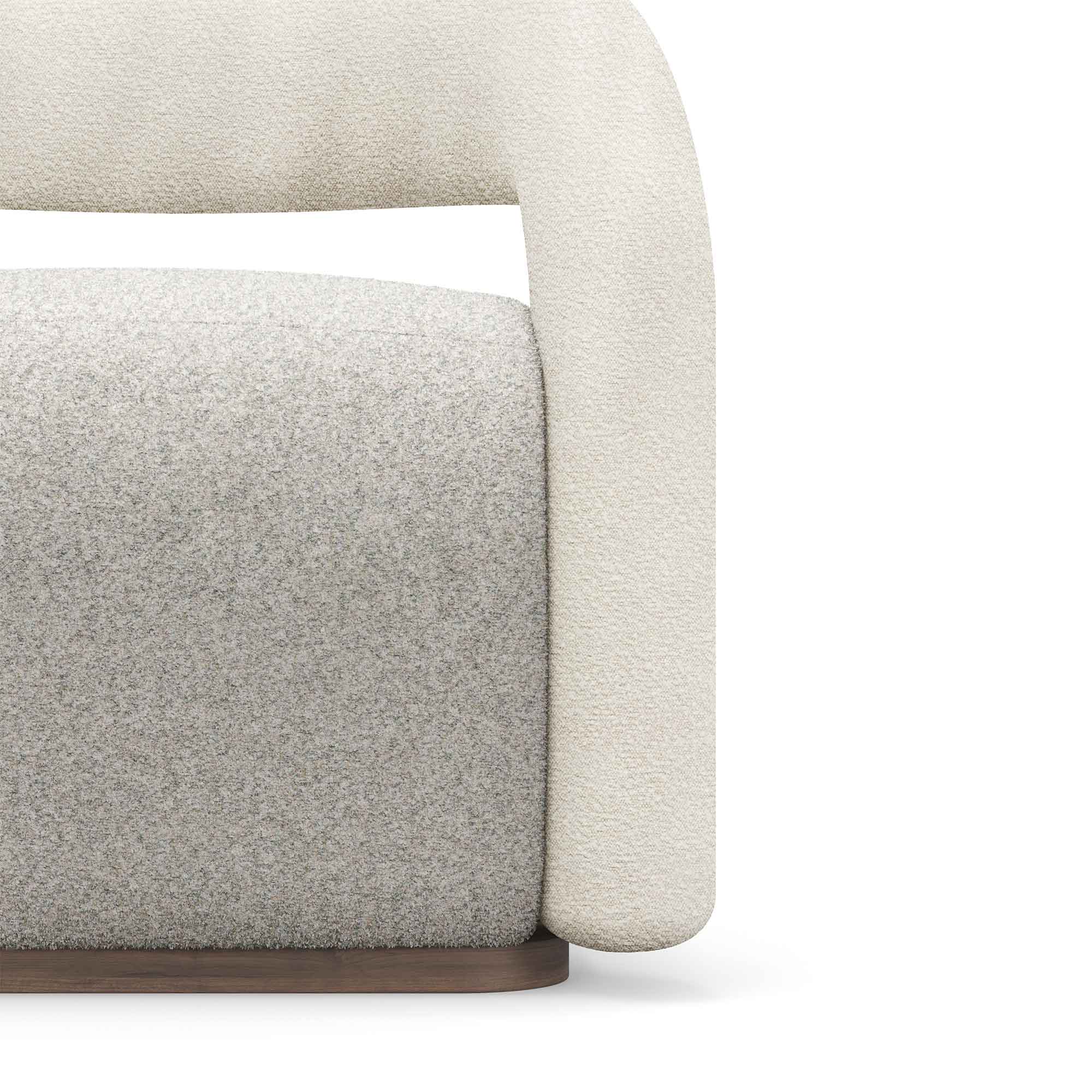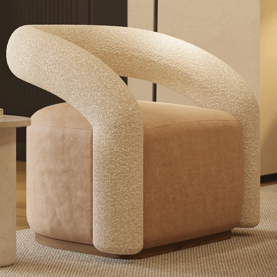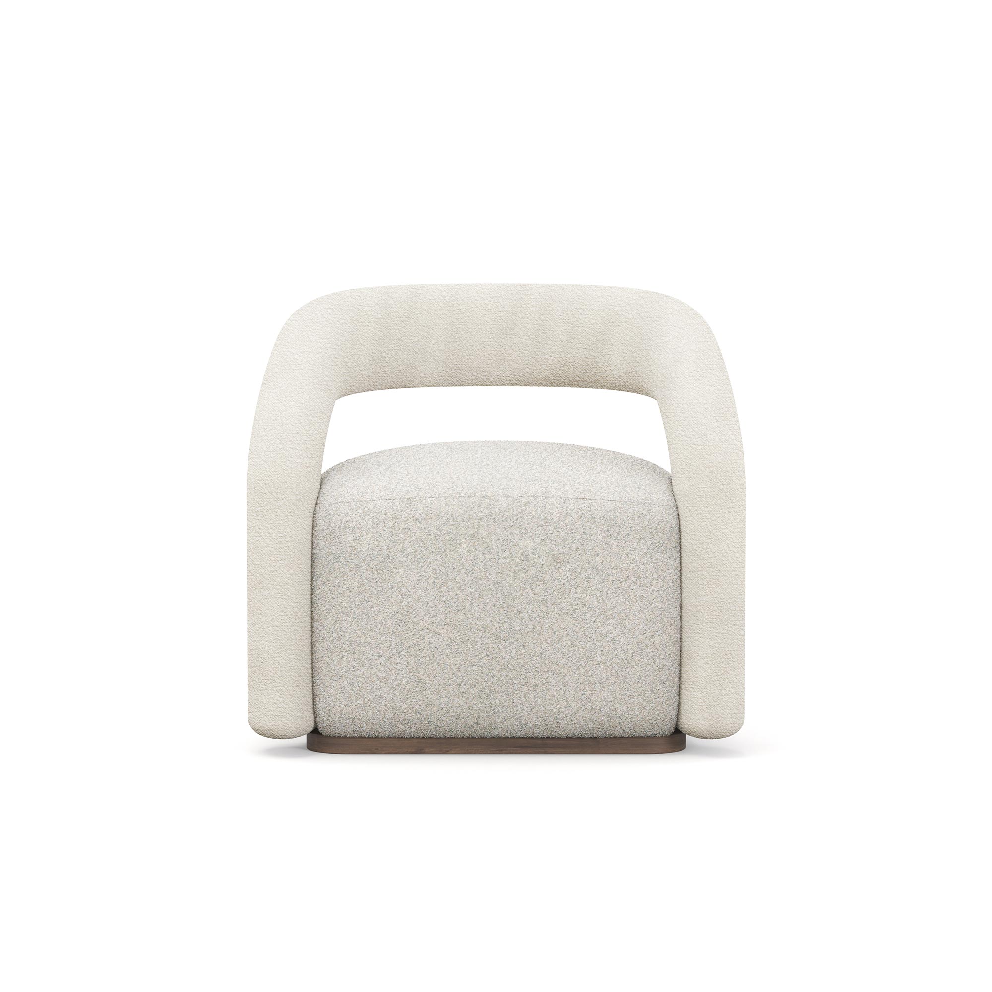 The Emma armchair is upholstered in premium fabric, ensuring a soft and luxurious seating experience.