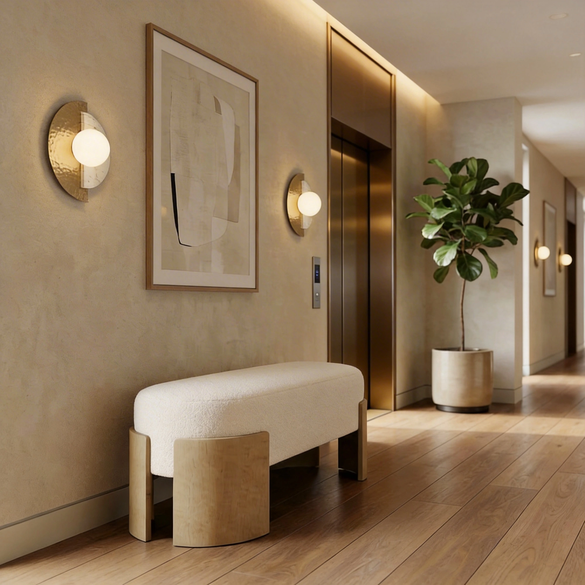 In use, Gilda offers easy, informal seating for putting on shoes, placing a bag, or pausing with a book, while its quiet geometry and material clarity keep the room visually ordered.