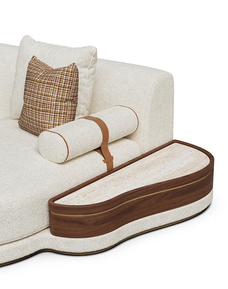 Bouclé , Walnut Matte , Travertine , Aged Brass |