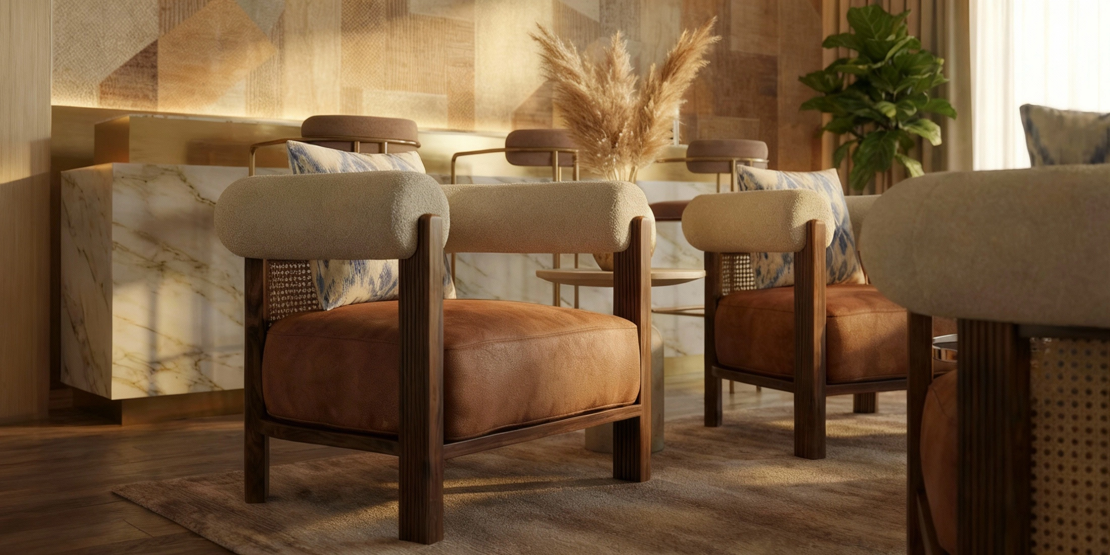 | Materials | Finishes | Bouclé, Velvet, Walnut Matte, Rattan |