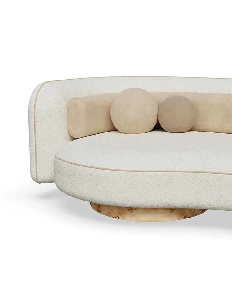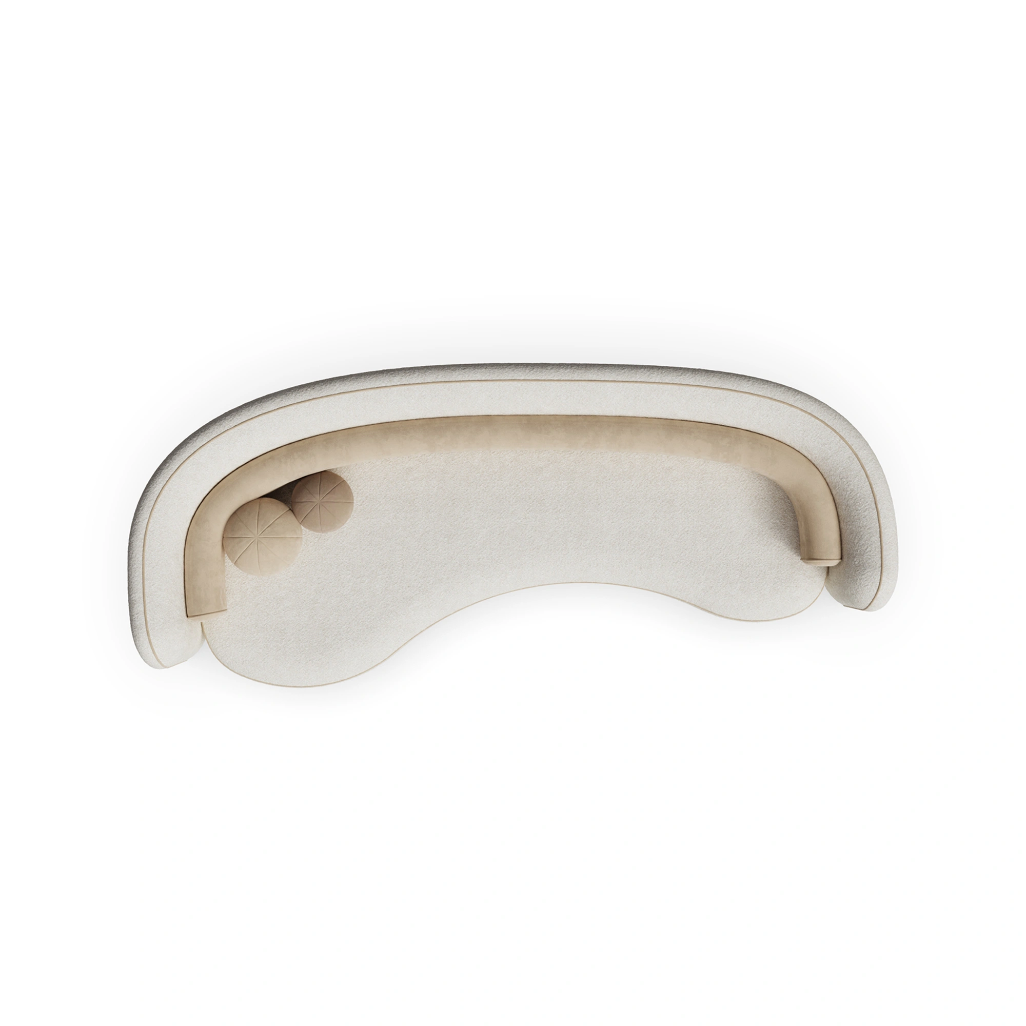 The Bénice Sofa is defined by its continuous, flowing silhouette and enveloping comfort. Designed as a single sculptural gesture, its gently curved form creates a calm and inviting presence, encouraging conversation and relaxed lounging.