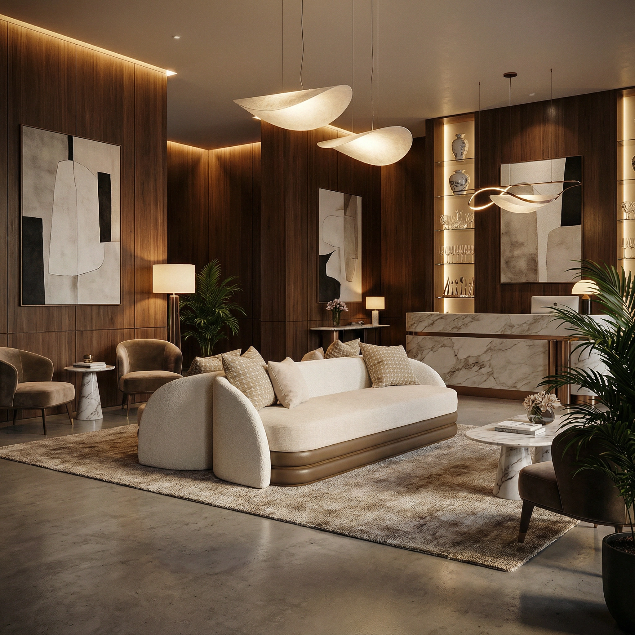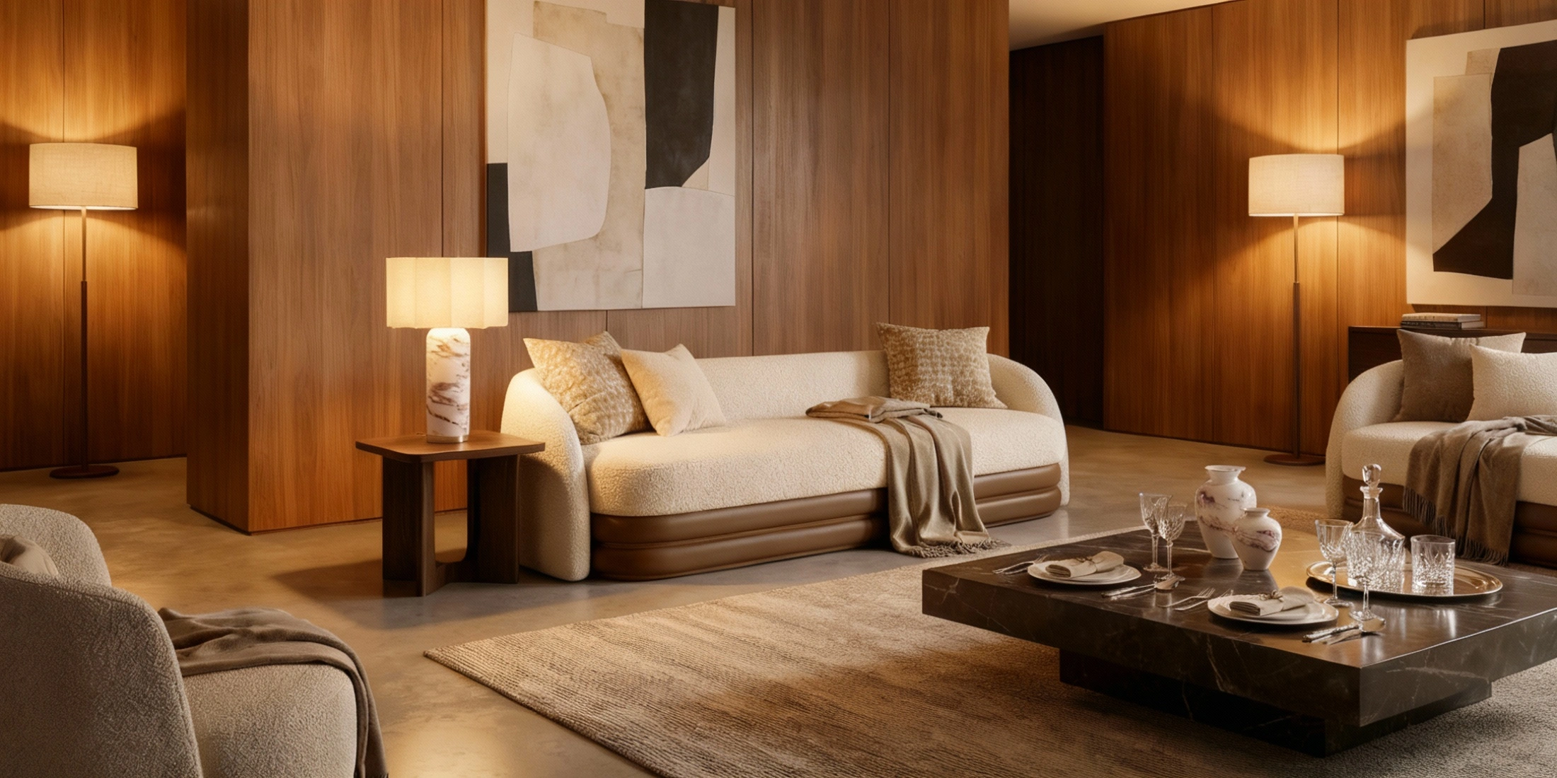 | Materials | Finishes | Bouclé, Velvet, Leather, Walnut Matte |