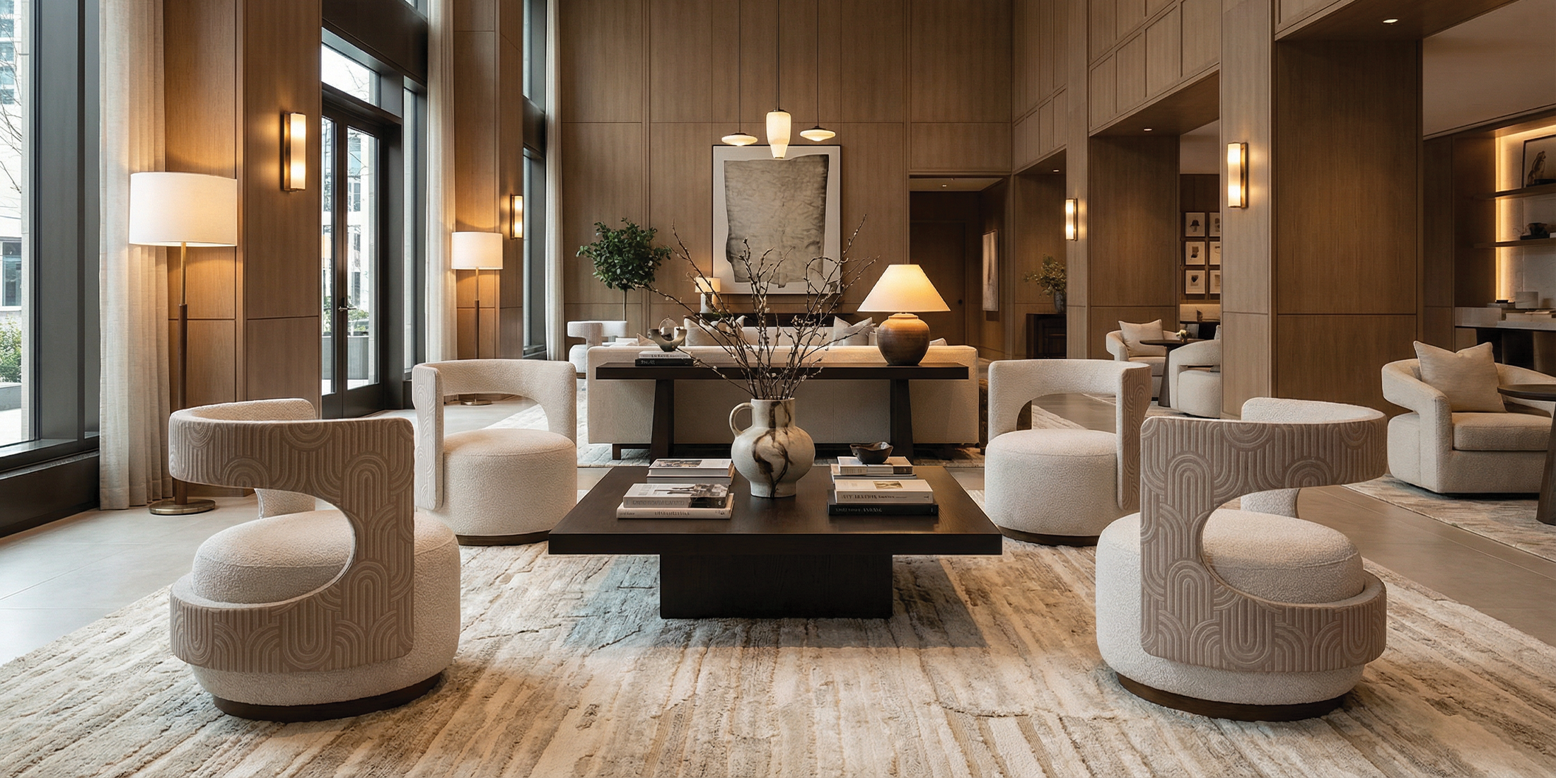 Proportions are tuned for lounge comfort, with a generous seat, supportive back, and soft tactility that works in living rooms, suites, or reading corners. The chair’s sculptural form brings a controlled sense of volume without overwhelming the surrounding architecture.
