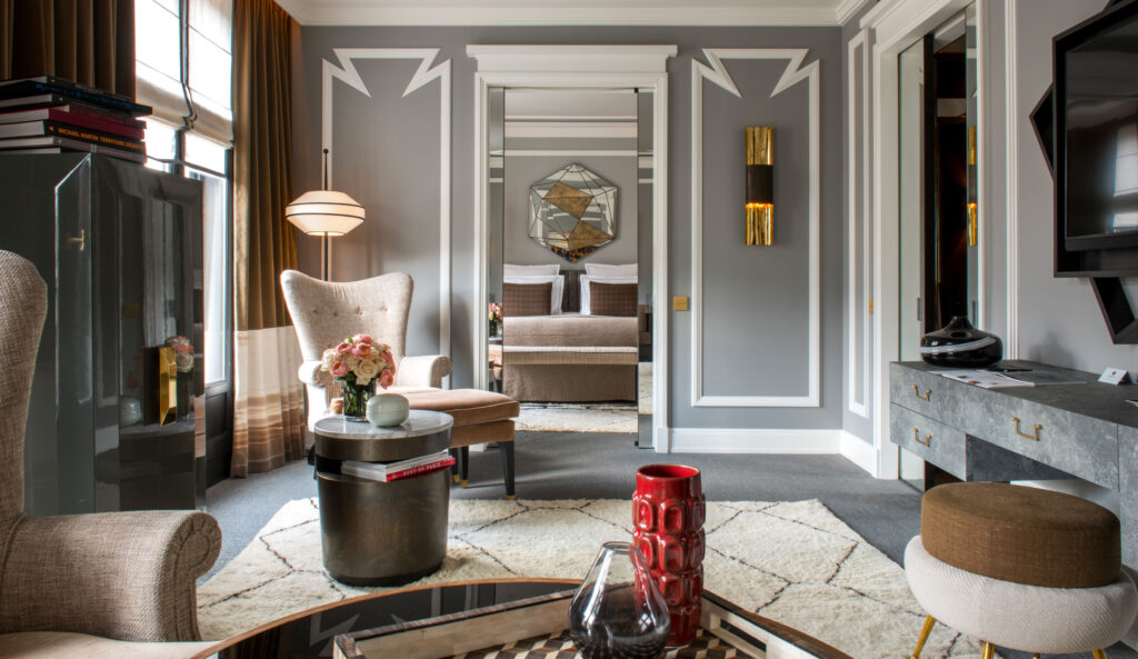- Jean-Louis Deniot’s designs for Hotel Nolinski showcase furniture that merges classical proportions with contemporary details. His curated pieces, including velvet armchairs and sculptural side tables, evoke sophistication and artistry.