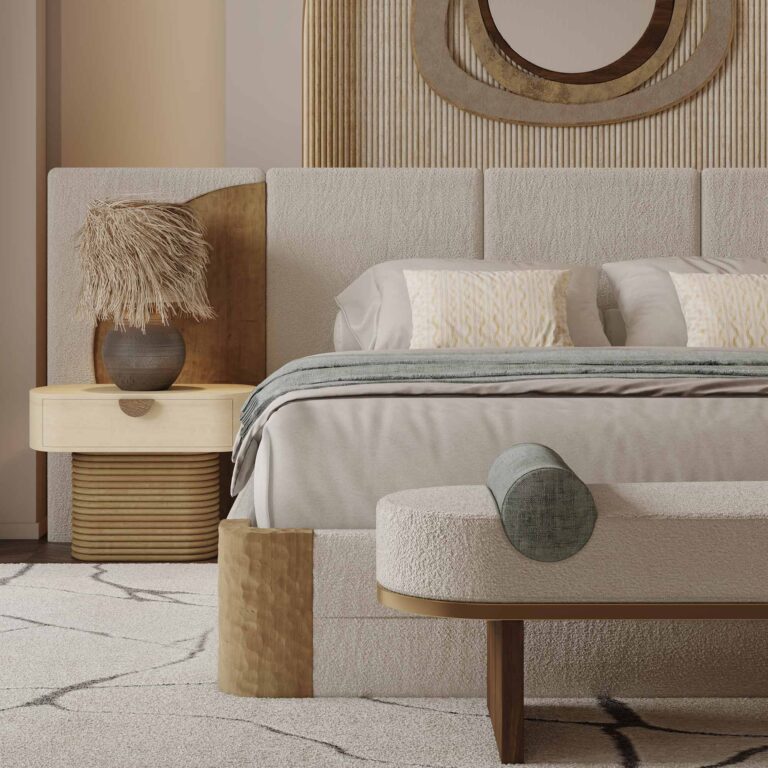 In the bedroom, our beds, nightstands, and sideboards offer a haven of refined simplicity. Designed for luxury bedroom interiors, they balance softness and structure — a union of natural materials, seamless joinery, and proportioned beauty. Whether minimal or ornate, each design radiates an understated sophistication that defines the luxury bedroom experience.