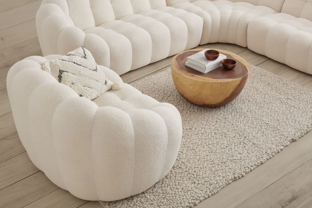 Sculptural Forms and Bouclé Furniture